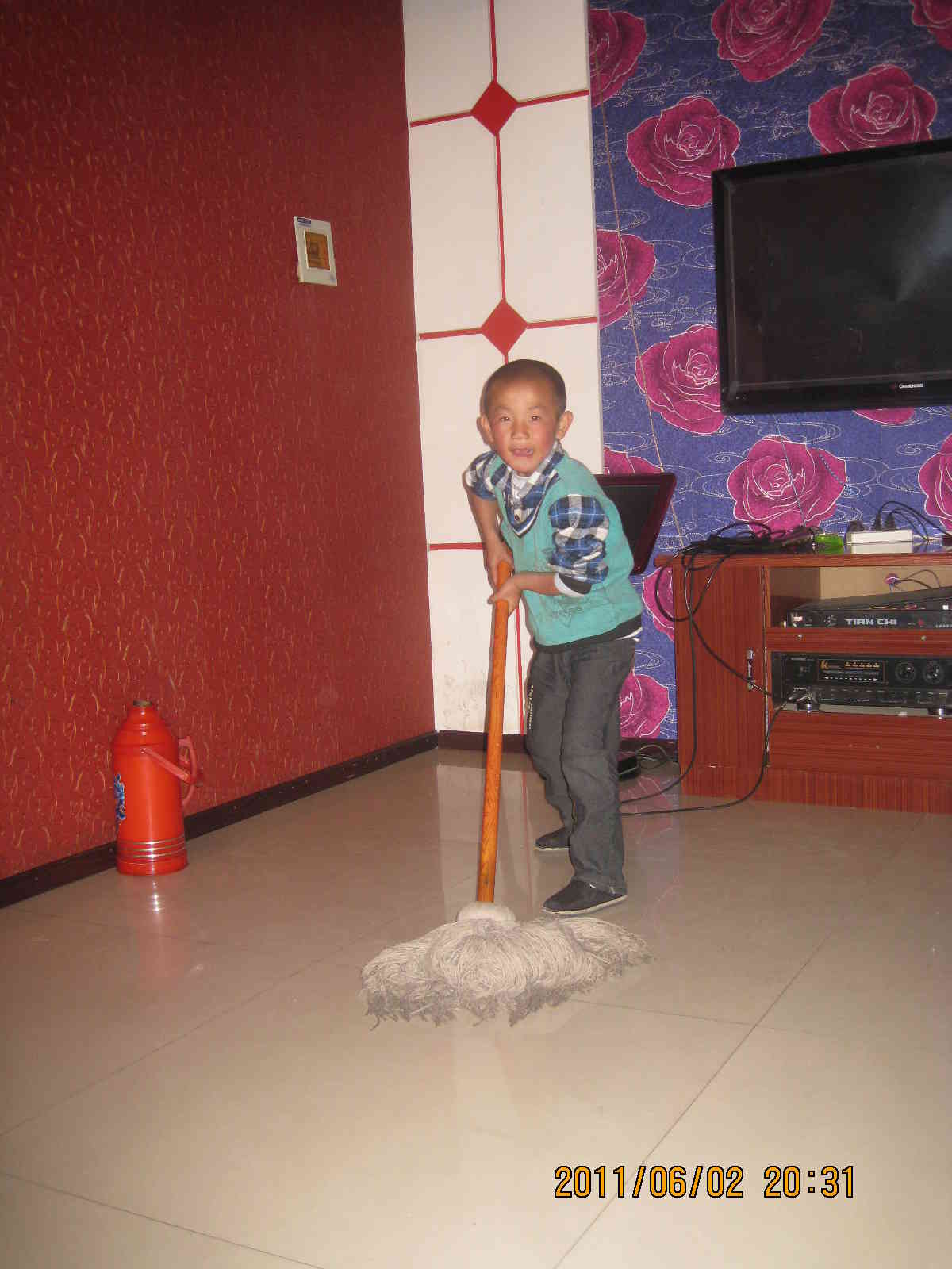 他还很爱劳动。家中有垃圾时,他总会及时处理完,他这样似乎是想找娱乐吧!他拖起地来很有节奏感。他拖地的样子,让人看起来十分可爱,但又十分滑稽。他是让人喜爱的。 这就我的弟弟,一个调皮可爱的孩子!