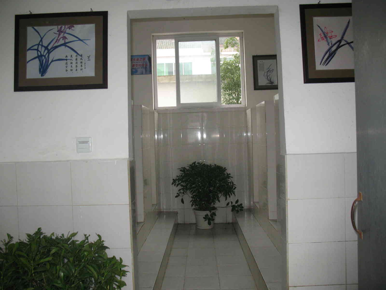 学校的厕所也别有一番风味,每层楼的厕所里都挂有有关春、夏、秋、冬的壁画,不仅如此,为了绿化厕所,学校在每间厕所里还放置了一些盆景。一进厕所让我们感觉到的是四季如春,而不是苍蝇满天飞。