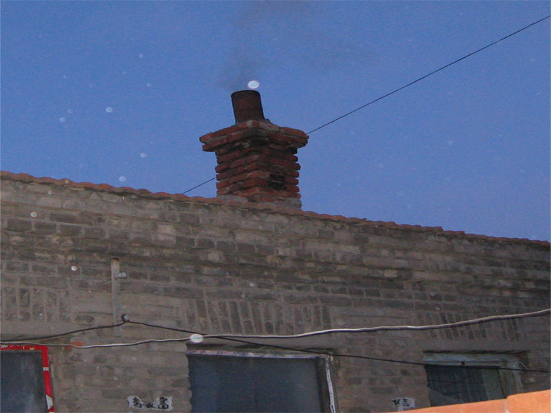 还有的人家,总感觉一个铁皮制造的高烟筒造价实在是有些高了点儿,便用盖房子用的两片吉瓦合起来,拼成了一个圆筒形的烟筒,坚实节约,两全其美,体现了人们源于生活的智慧。