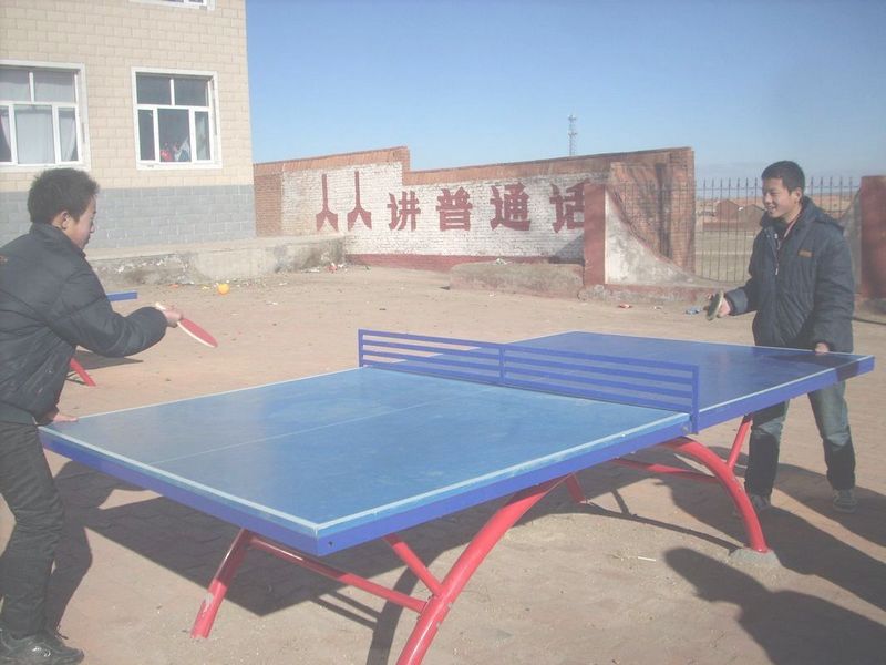 下课了,同学们有的玩耍,有的还在写作业,瞧这两位同学正在打乒乓球,灿烂的笑容挂在他们的脸上,好像他们永远都挂着笑容。