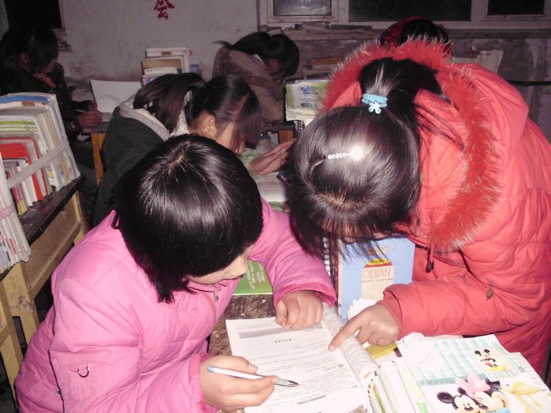 玩耍过后,同学们又开始学习了,深厚的学习气氛弥漫于整个教室。这两个同学正在讨论问题,他们双方各不相让,这正不体现了他们的竞争意识吗?