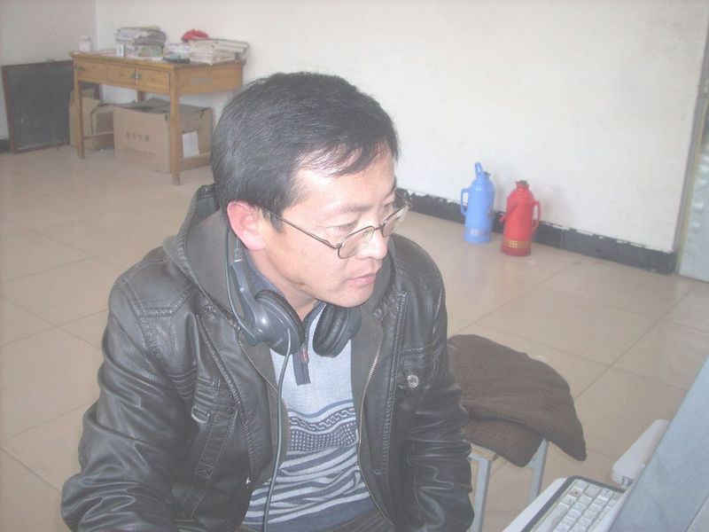 这是我们的班主任,在课下他和蔼可亲,平易近人。课上,虽然很严肃,但是偶尔也会很幽默,因此常常使死气沉沉的课堂变得活跃。但是有一点是不变的,就是班主任对我们的学习却从不放松,总是一丝苟。正是这样我们班才涌现出大批的佼佼者。瞧,这不又在为我们查资料了。