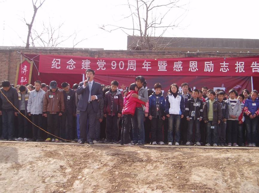 "七一"前夕,槐芽初中"支学助教感动中国——庆祝建党90周年暨感恩励志报告会"在操场举行。这场别开生面的报告会,将是我校学生自我转变、重塑人格、树立信心,确定人生理想目标的一次重要契机!既是庆祝建党九十周年的礼物,也是有力推进我校德育工作再上台阶的新举措!