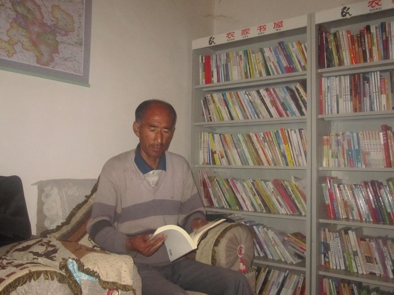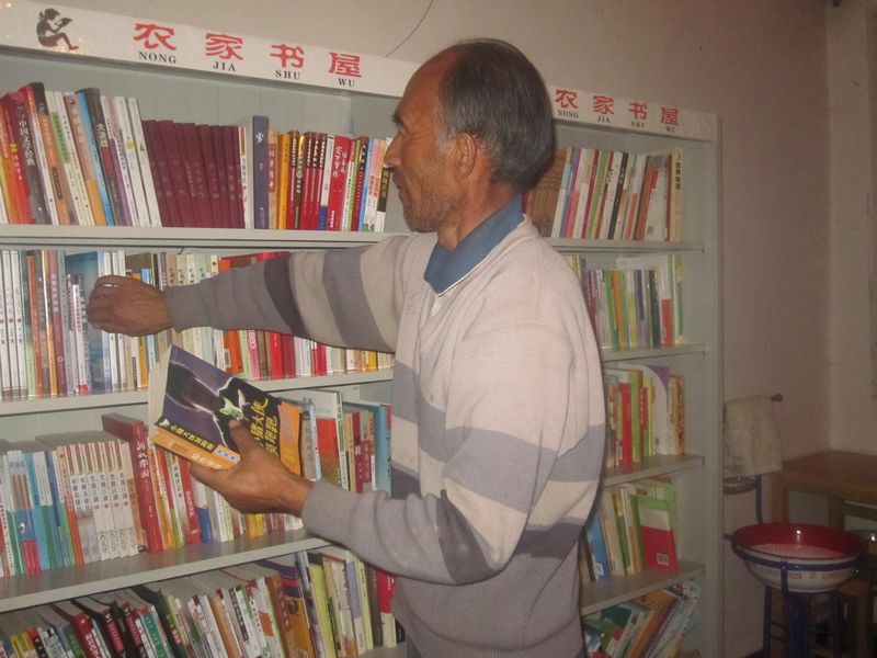 这个人也是普通的农民,和别的农民一样也种地。他原来是一位民办教师,但早已经被辞退。可是,他不放弃对教育事业的追求,当不了老师,他就向政府申请,在他家办了个“农村图书阅览室”。我们可以到哪儿借阅图书,书虽然不多,但被他整理的井然有条,一尘不染。每次我们去借书,不管他有多忙,都会放下手中的活,给我们拿书。