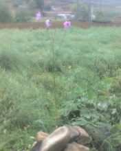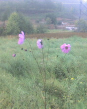 我继续悠哉游哉地走着,漫不经心得一转头,发现了一只和我等身的花朵矗立在一堆石块中。我有折返回花朵前,慢慢地蹲下来。我完全被这支花所折服——这支花的生存环境如此的恶劣,但它努力地把根绕过石缝,深深地扎在泥土之中,汲取自己所需。小心翼翼地把养分合理应用来组建自己。所以,它比其他的花长得都好。在它那强壮的身体上长着几朵异常美丽的花朵——粉红的花瓣与淡黄的花蕊显得十分可爱,再加上花瓣上的小水滴,非常小巧玲珑,惹人喜爱。