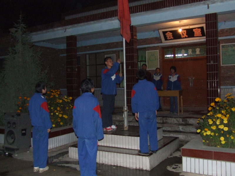 当晨读铃声响起的时候,各班同学迅速走出教室,站好队,在体育委员的带领下到学校旗台前指定的位置集中,准备参加升旗仪式。