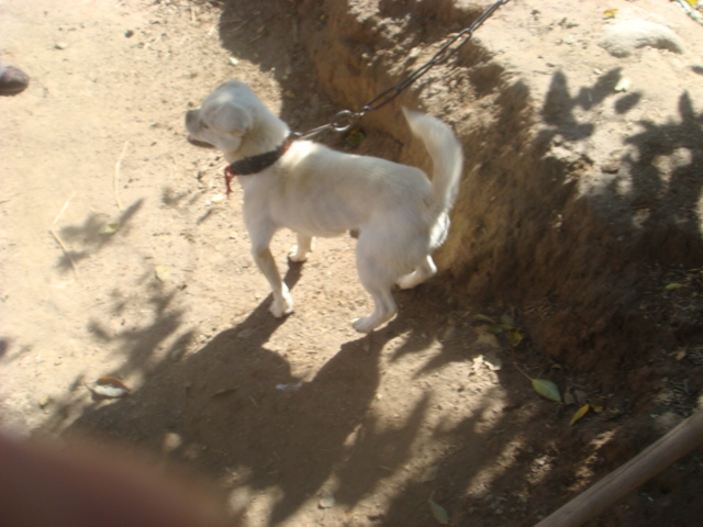 "小白"也是非常调皮的,常把奶奶家的鸡追赶的不停,鸡见了它就像老鼠见了猫一样,常敬它三分。