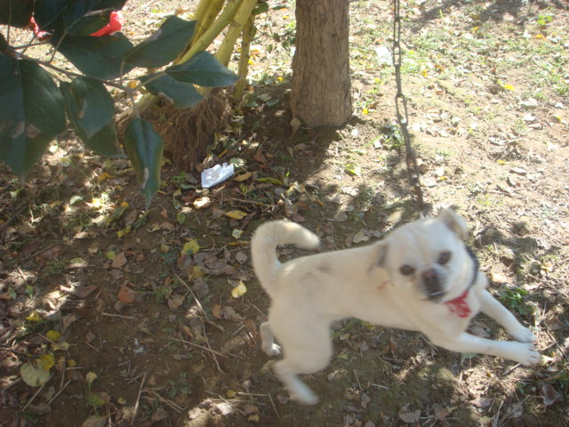 那天,奶奶家来了几个买苹果的人,这下可把我家小白忙坏了,"汪汪"的叫个不停,并且在人们脚下蹦来蹦去,摇着它弯弯的小尾巴。那样子也挺吓人的。