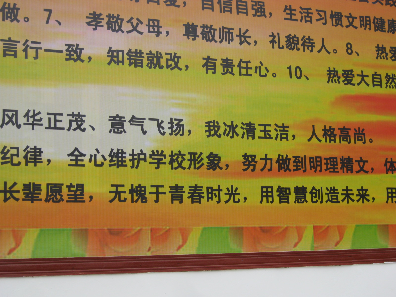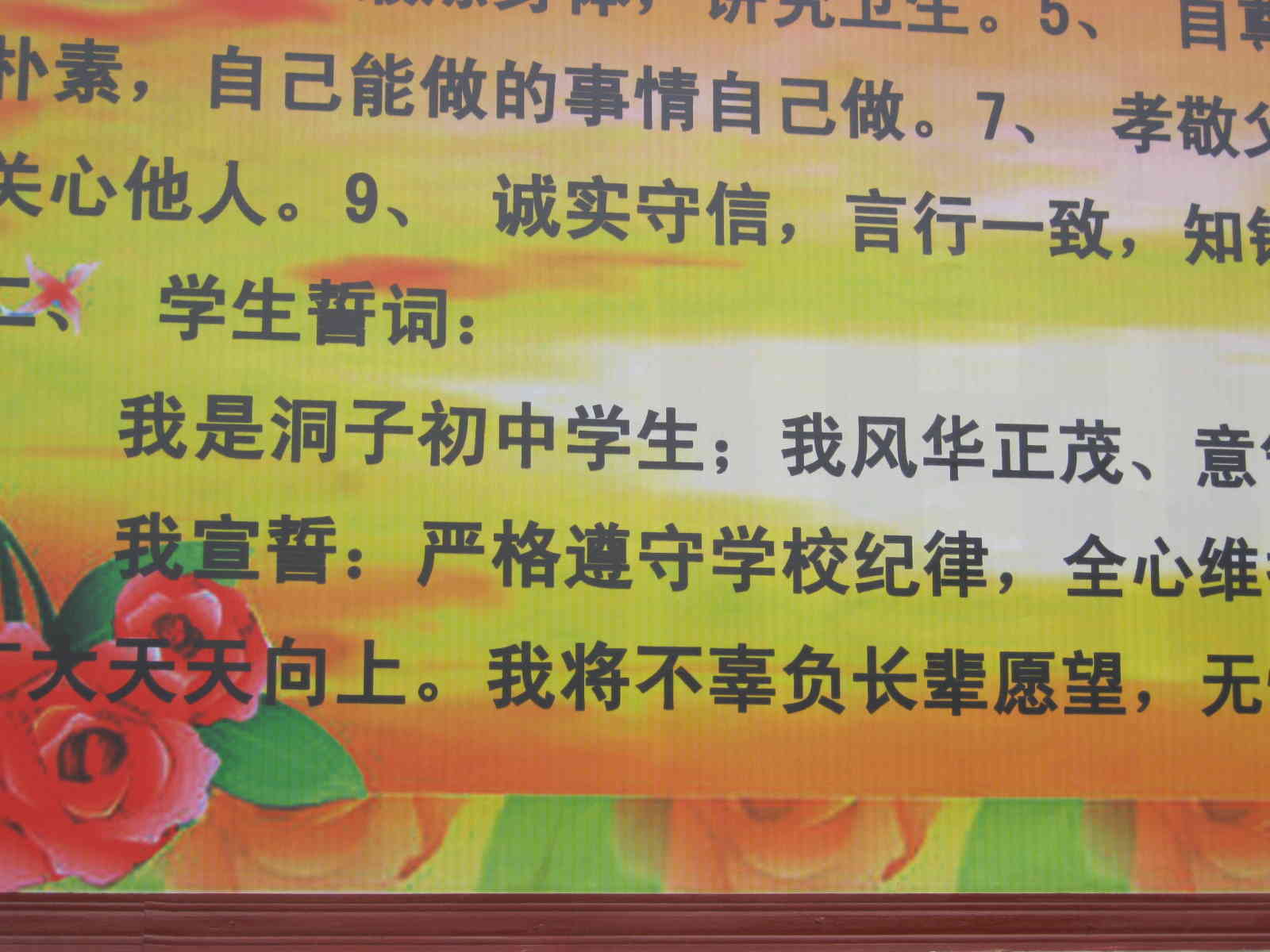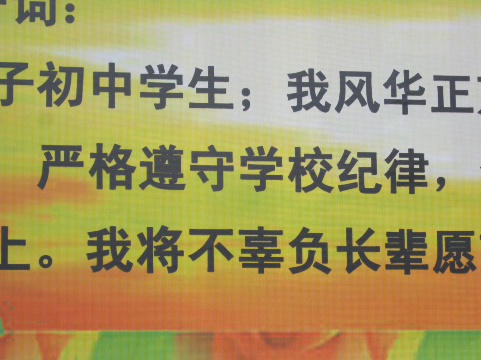 学校在校门口的宣传栏上面挂出了《兰州市中学生学生誓词》。看着上面的字词,再对照自己,我发现我离这些还有一定的差距。
