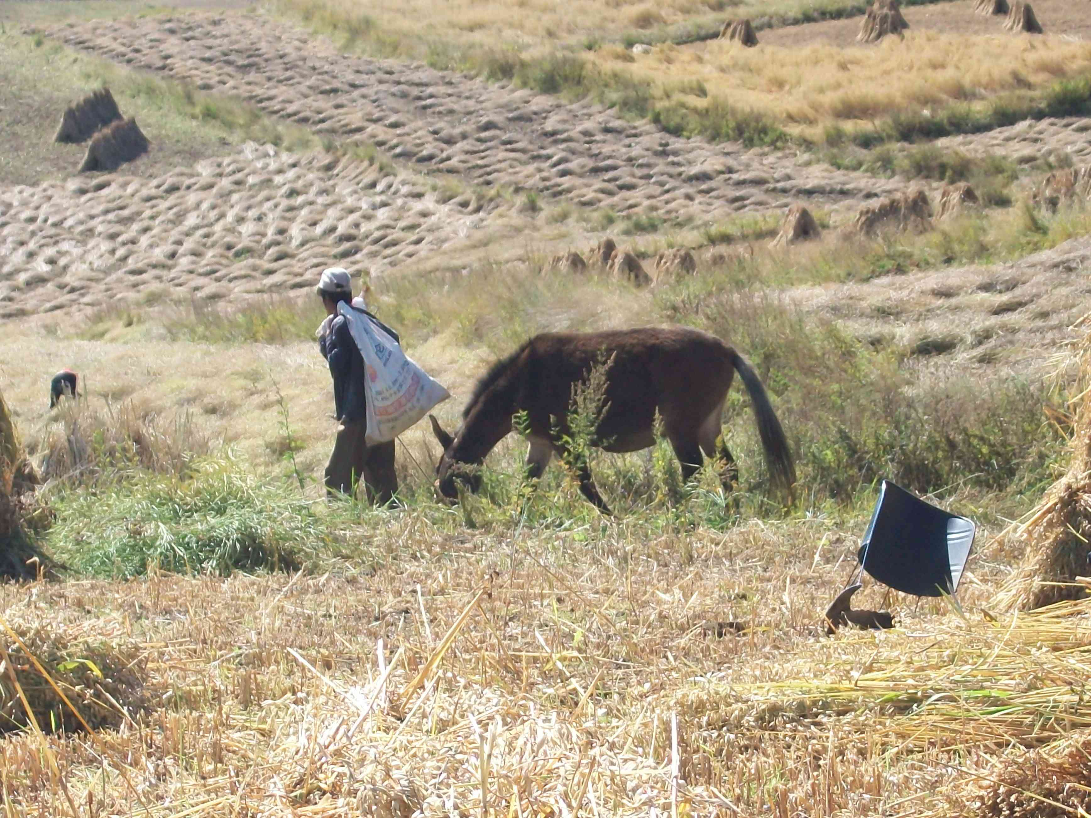 远处,群群的大雁变的稀少起来,它们与大山相隔的越来越远,一直到了模糊我们视线的黑点。块块田地变得黄起来,给大地笼罩上一层馨香的薄纱,这一切都充溢着和平与宁静的气氛。鸡上窝,畜进棚,辛劳了一天的人们很快松弛下来,渗透进这永恒的秋中......