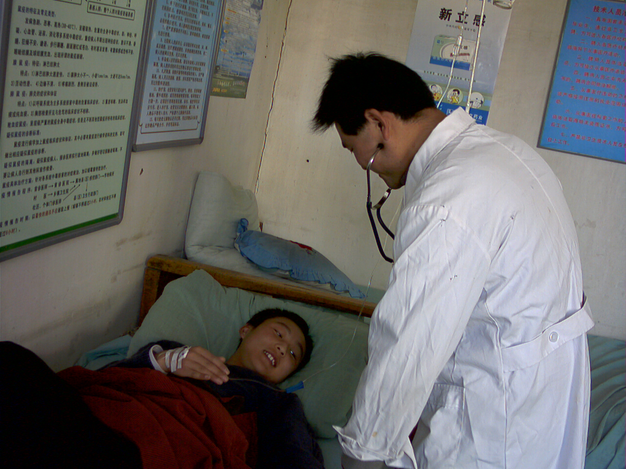 别看医院小,可五脏俱全哩。它还有住院处,一个病房,五个床位。实行农村医疗合作以后,来看病的人也多了起来,常常有病人住院。