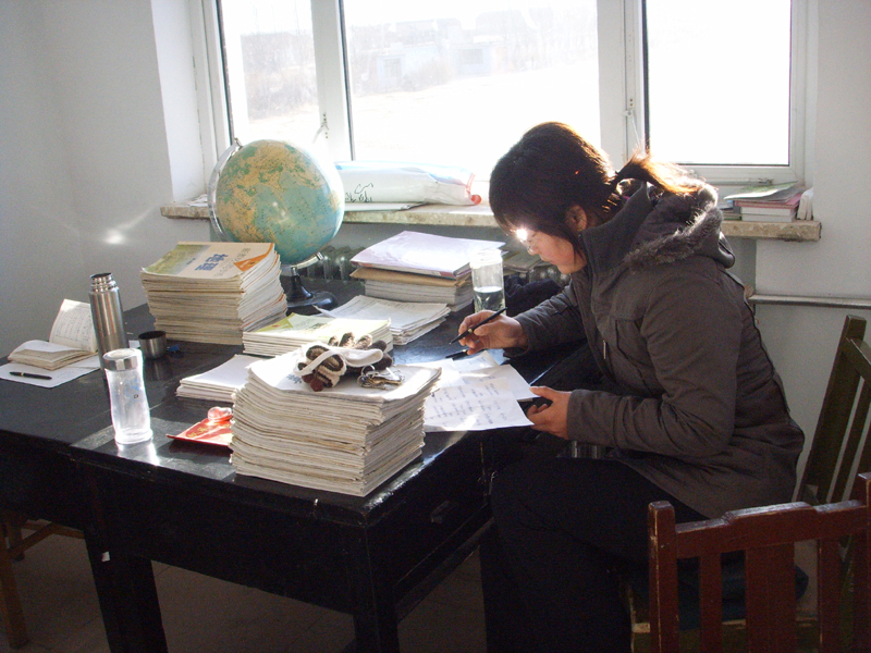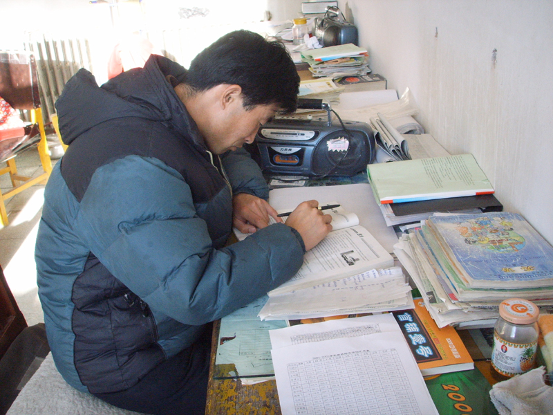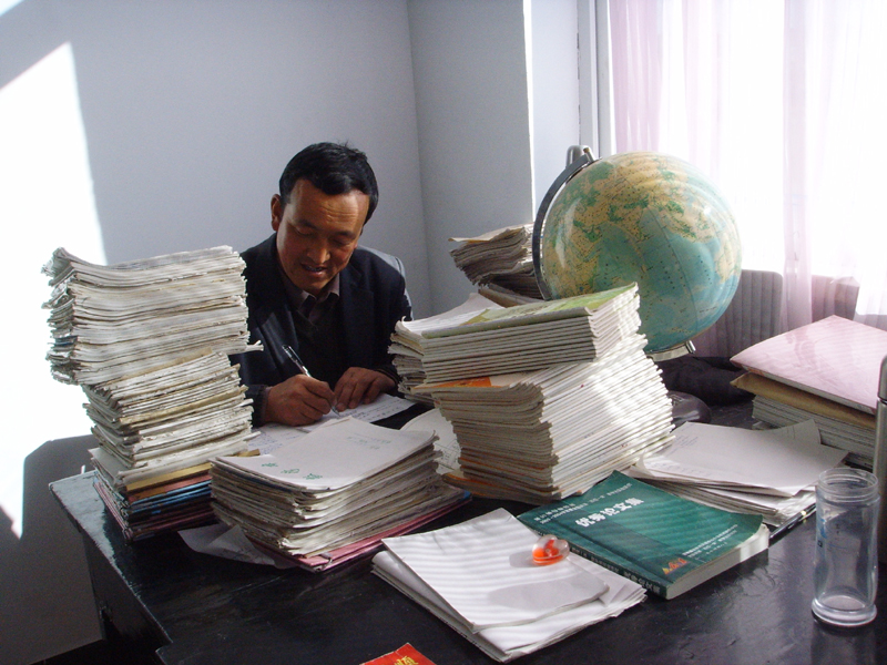 一张办公桌,一堆作业本,一根红油笔,一套教参书,一沓教案纸,一个工作日,一颗奉献心。埋头于桌,伏于书案。一心只教"圣贤"书。