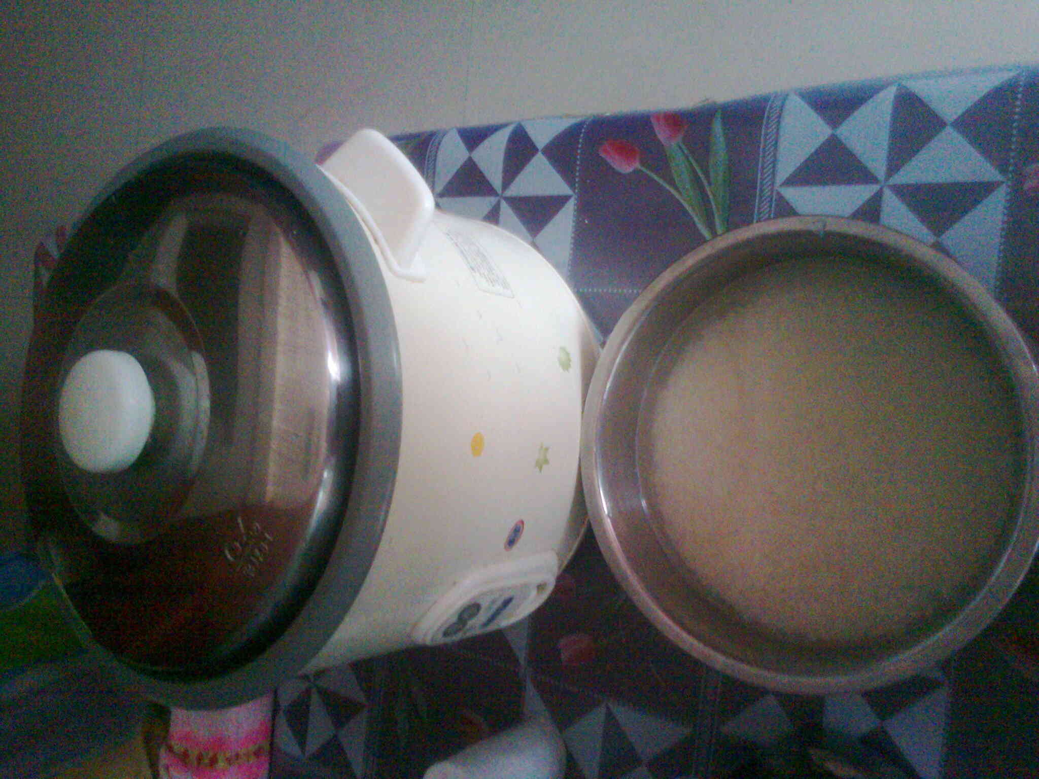 我先放了一碗米,又认真地淘气来了,然后放在锅里,一小杯一小杯地往锅中倒水,倒水。刚够量时,我就把锅插上电,盖上了锅盖。这时,又迫不及待的想看我的杰作。哎~