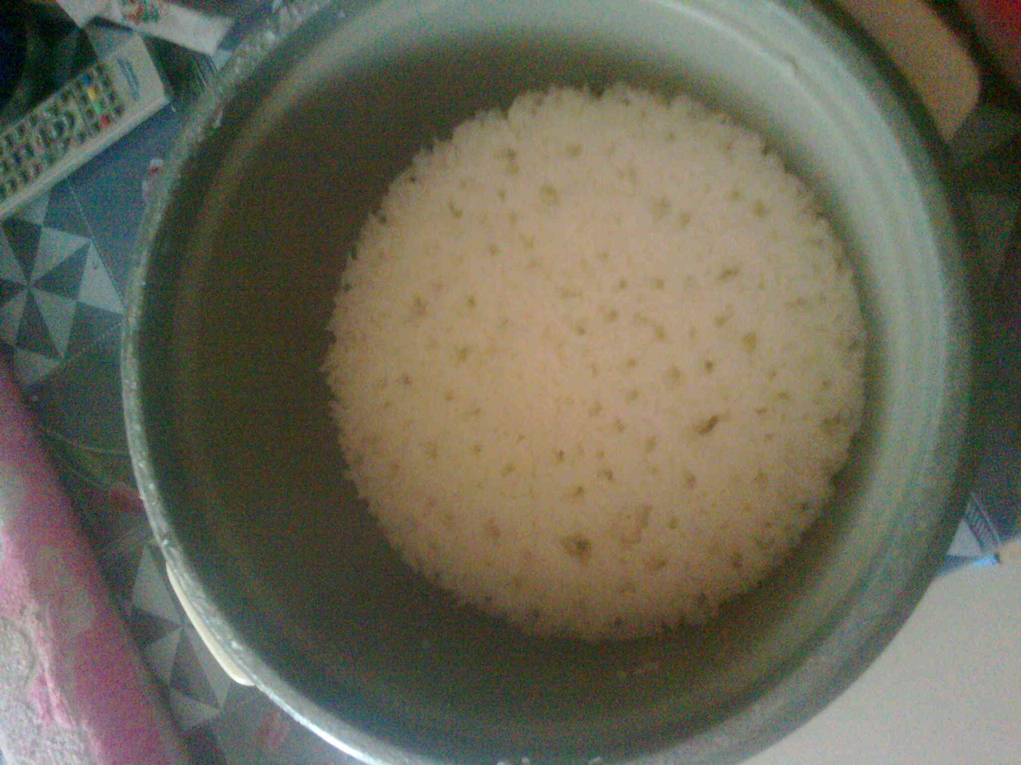 十分钟,二十分钟~渐渐地,锅中飘出了一阵阵米香。"成功了!成功了!"我高兴的叫了起来。四十分钟过后,我把它放在保温上,又拿了个碗,盛上米饭。米白白的,亮金金的,我心里有说不出的感受。