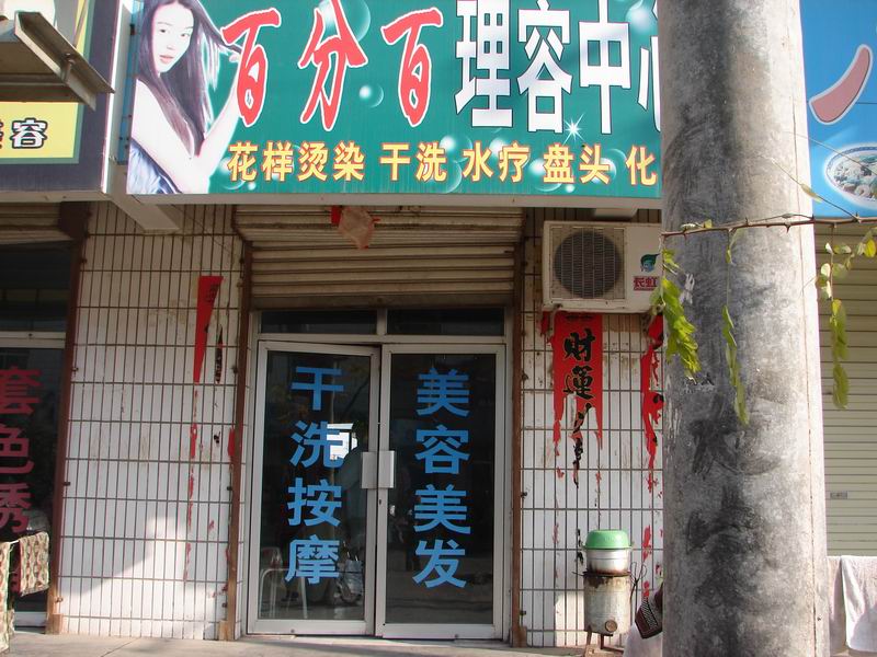 走到理发店的门前,我们可以清楚的看到理发店的门牌,还有服务的内容,宣和的理发店真多,最后我们还是选中的这家。
