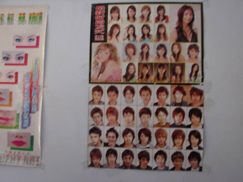 在她们给我剪头发的过程中,我还看到了墙上的一副画,上面有好多好多发型,看的我眼花缭乱,不过我还是偷偷为自己选择了一种,想着有机会我也给它来个靓的。