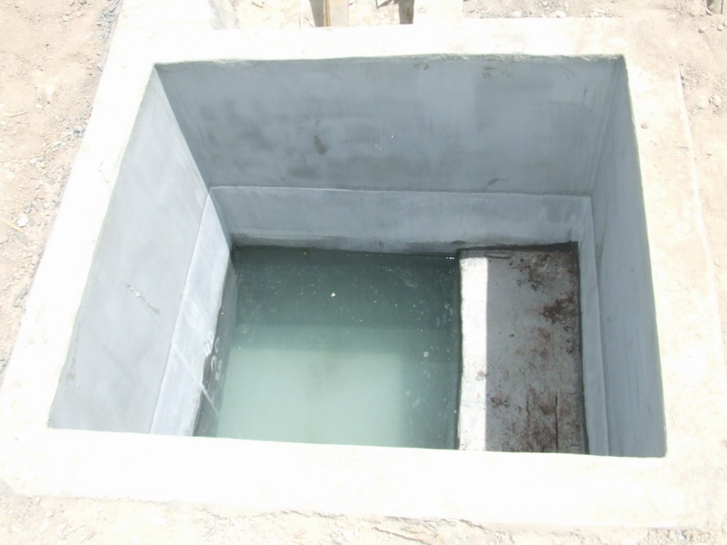 然后用砖在离坑边有一块砖长的地方把砖摞起来。一边摞砖一边在形成的小槽里浇上水泥,这样连续摞砖连续用水泥把圆池护起来,到一点六米时停止。最后通上相应的管子。