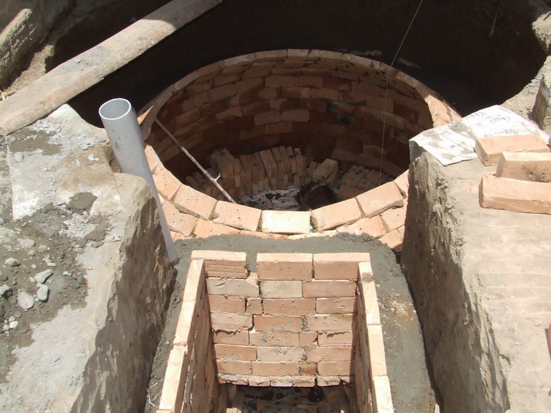 这时,就需要大量的水泥,先把水泥护在弧形上,再在空处用水泥垫好,直到与地面一样平,留下直径为五十厘米的小口。过两天,等水泥凝结结实了,把里面固定的砖再取出来,这样一个沼气池就完整修好了。