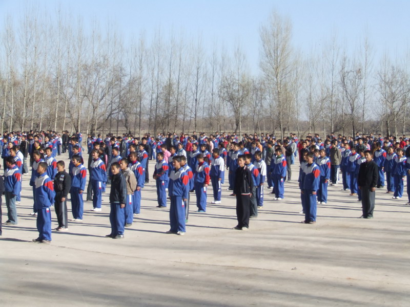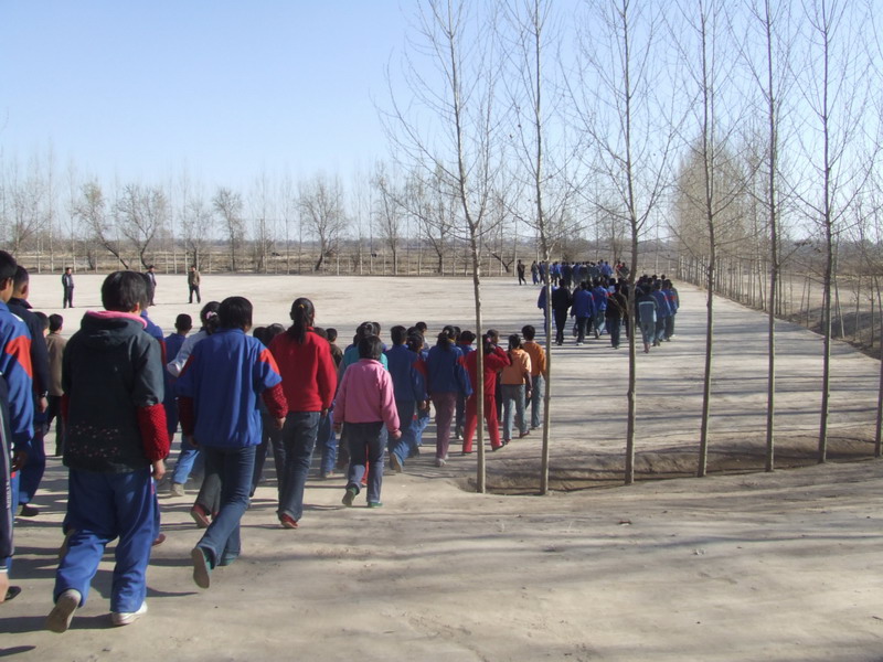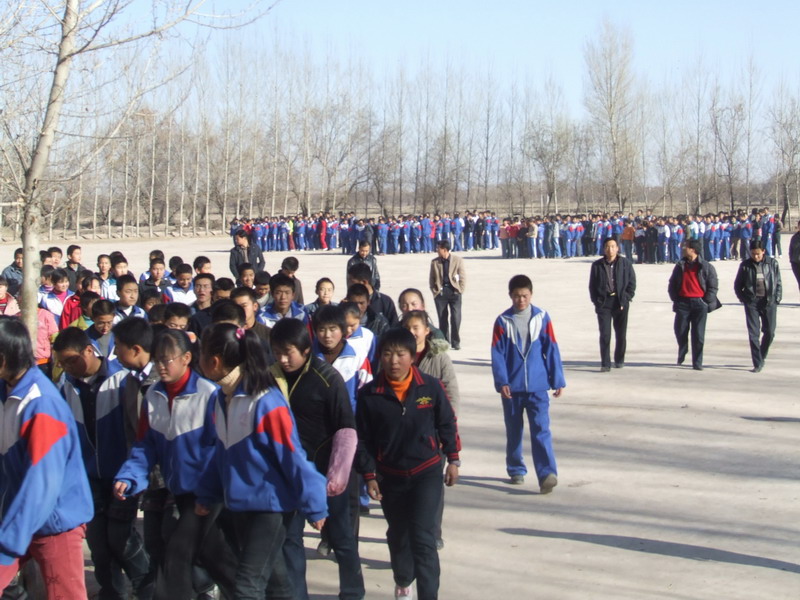 当各班的队伍刚走出校门,就开始跑起来,快速跑入操场,列出整齐的队伍。