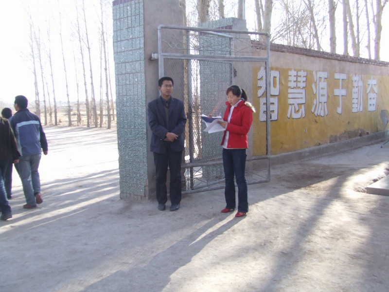朋友,您见过学校中午上操的吗?我们学校就有这样一个奇特的惯例,目的是让老师和同学们通过午操舒展一下自己的筋骨,清醒一眄自己的大脑,从而更好地投入到工作和学习当中去。 瞧,每每下午出操铃一响,各班队长就带领 着队伍向校门外走来,校门旁还站着两位老师,在点各班的出操人数。