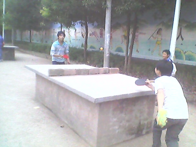 每当下课时,那些乒乓球爱好者都带着自己的乒乓球拍和乒乓球以飞快的速度冲向乒乓球台子那边去,恰好,球台就在我们教学楼对面,一眼望去就知道哪个空着。