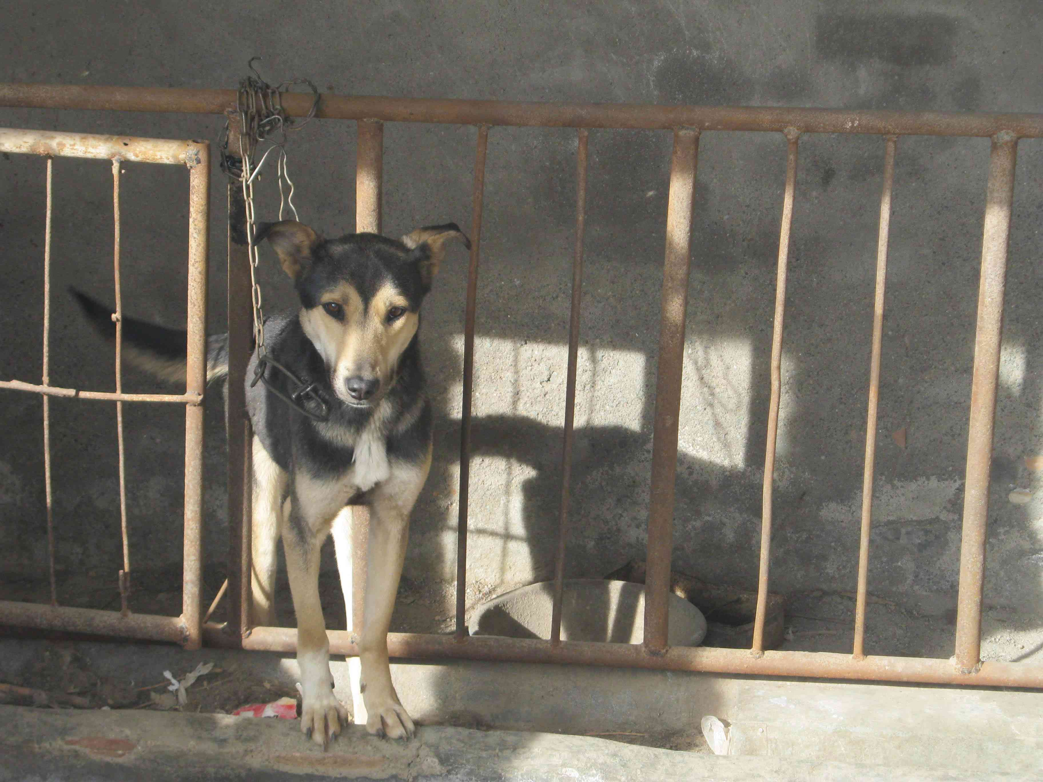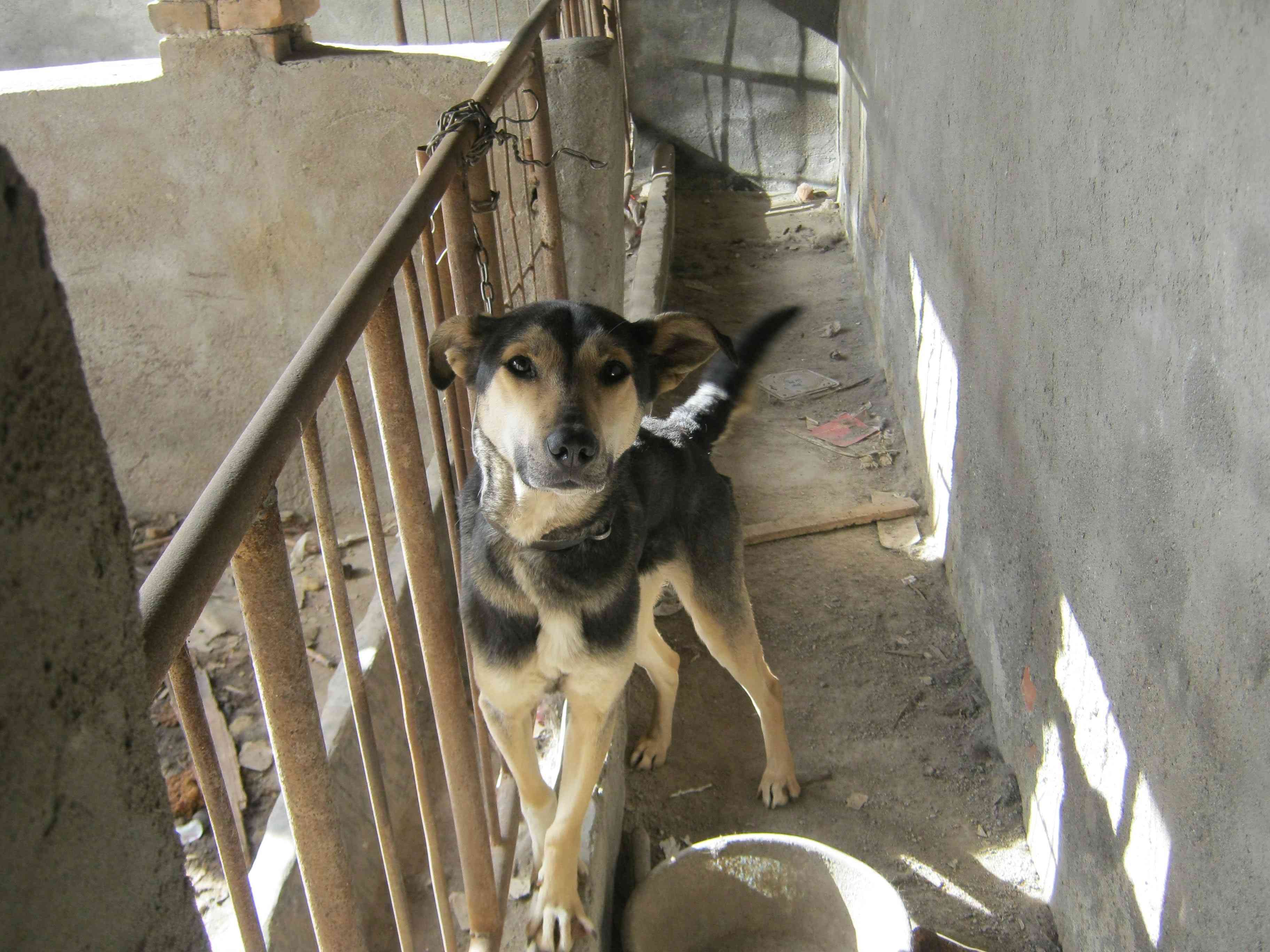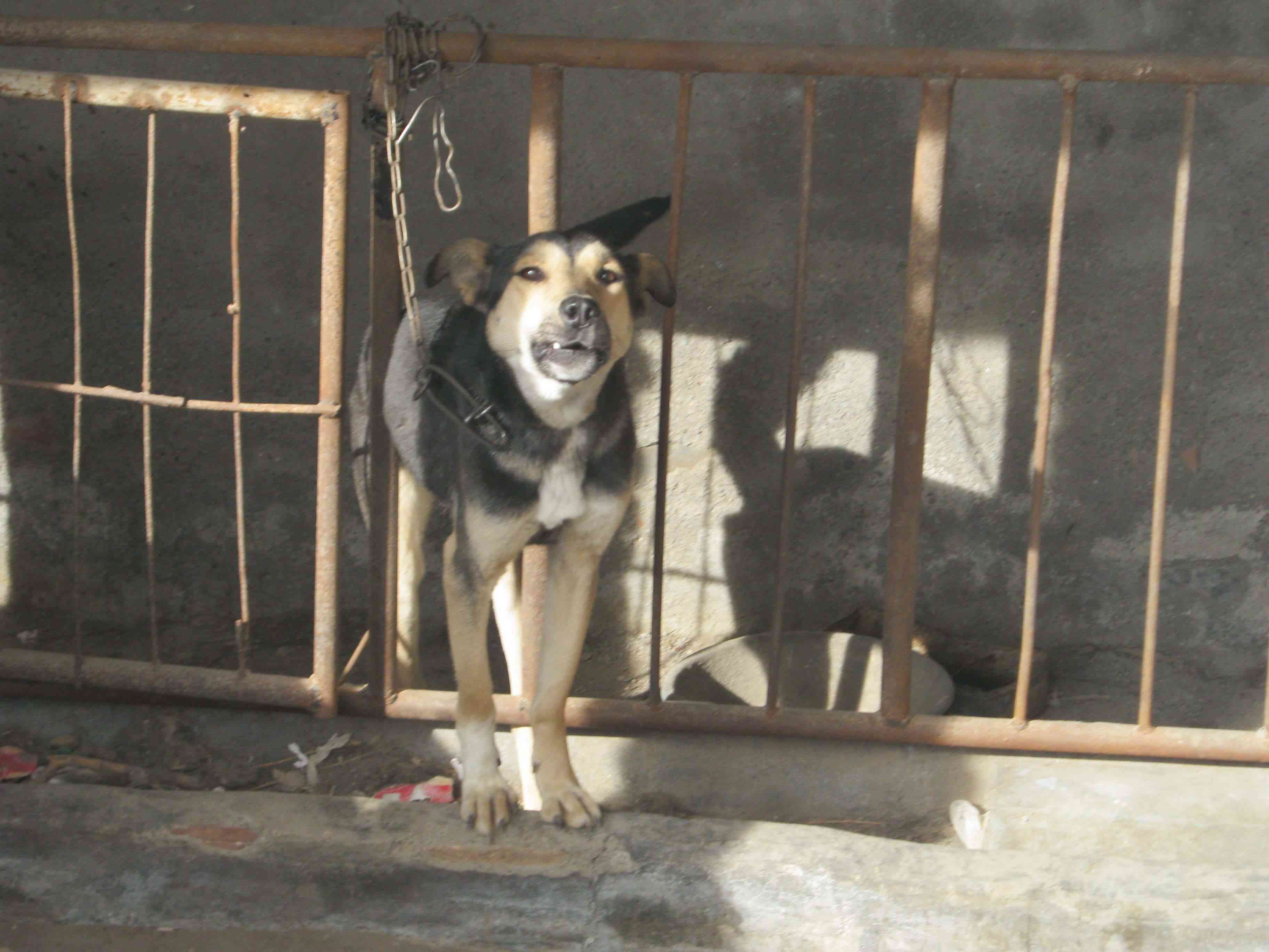 前几个月,邻居和我家盖房子,晚上,便把狗拉到房子旁边,让它看材料。某天晚上,我出去买零食,我看到两只明亮的大眼睛忽闪忽闪的,着实把我吓了一跳。拿来手电筒一看,原来是邻居家的狗啊。