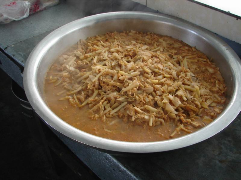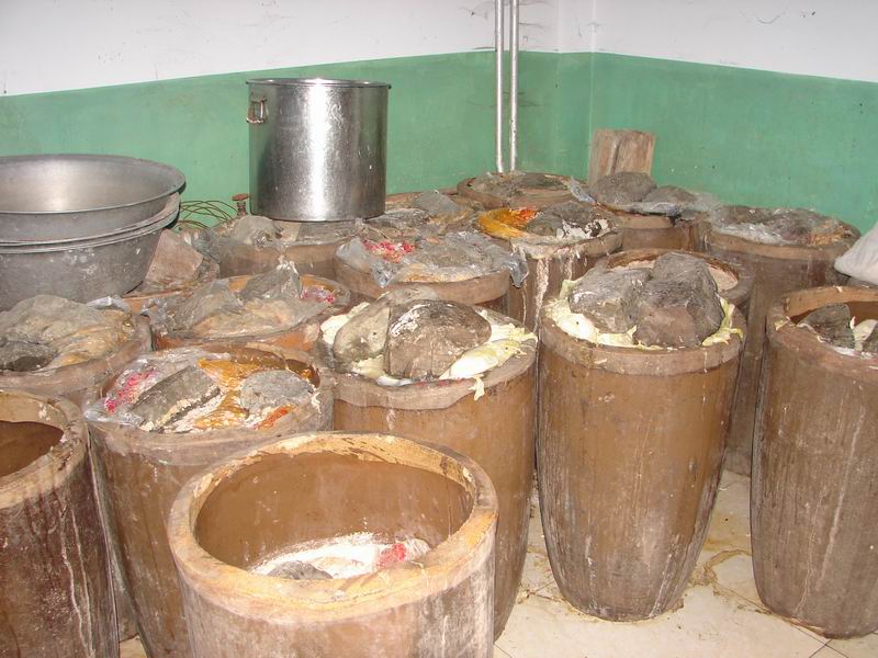 随着工作人员,我们来到了酸菜房,唉,农村就这条件,冬季吃新鲜菜太"奢侈",主食不是酸菜就是土豆了.来察人员没多提意见,只是提醒老板要严防老鼠,别让这些东东掉进酸菜坛子里了.