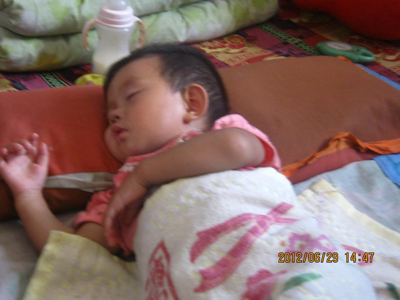你看小甜甜终于安静下来了,原来她是睡着了,你看她睡的是多么的安谧呀!你在看她的脸上洋溢着一种幸福的笑容,可爱极了!