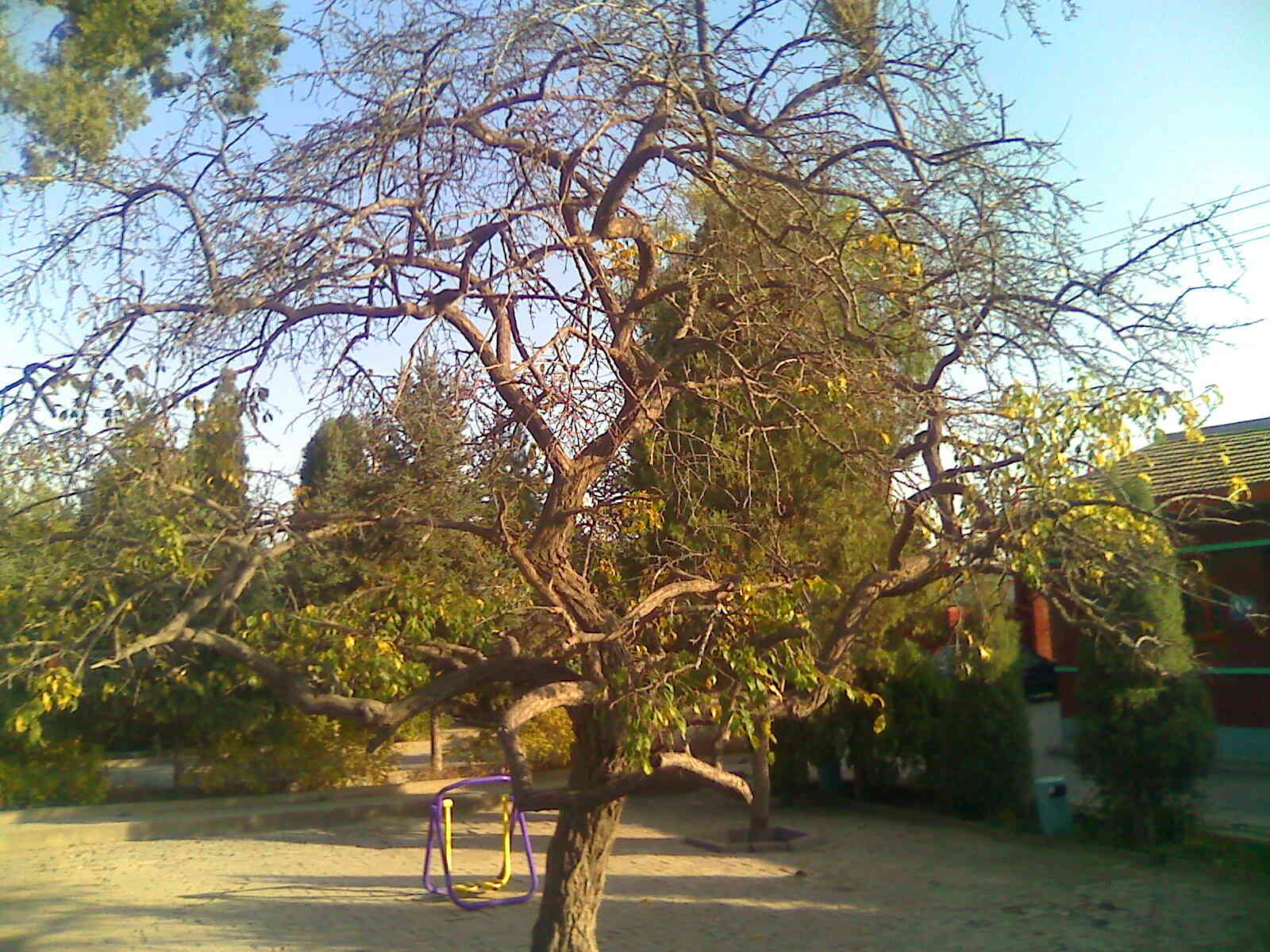 秋天到了。今天早上我到学校,猛的才发现,这棵杏树的叶子也落的差不多了,虽然还有寥寥几片,但还是以满怀的热情迎接并欢迎秋天,树叶的凋落意味着秋天的来临,意味着又一个新的季节向我们漫步走来。