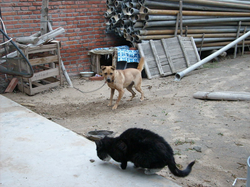 为什么说笨笨是个不速之客呢?因为自从它来了以后,它总是跟我家的小猫聪聪打架,害得聪聪每天只能在墙上站着。只要听到"汪汪"喵喵"迁"喵呜"的声音,我就得赶快跑出去"拉架"。这就是我家的不速之客。