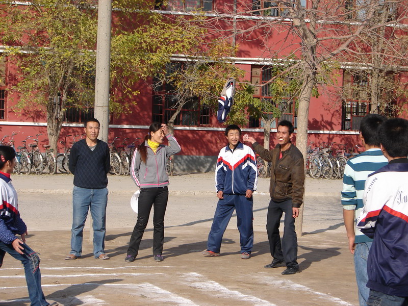 这不,咱们的老师也按耐不住寂寞,与同学们玩了起来,同学们看到来了位"大将",都提高了警惕,怕被他的沙包打中了,那天,老师的脸上露出了喜悦的笑容。