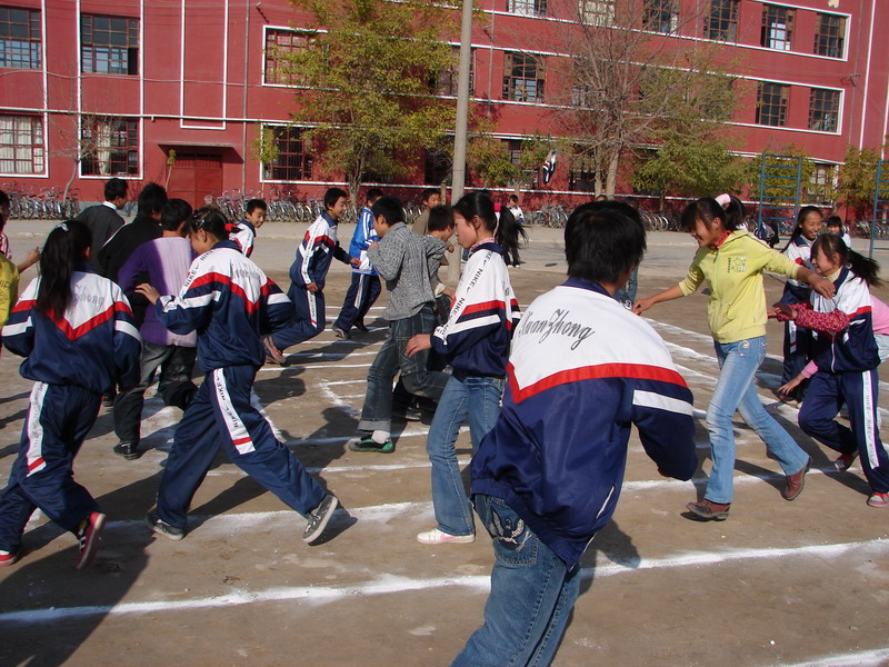 对于我们而言,难得的一节体育课是我们欢乐的世界,学校的操场上已经为我们准备好了"城",我们只需简单的分组,就可以开始跑了,咱们几乎是"大军出动",全班同学都参加。