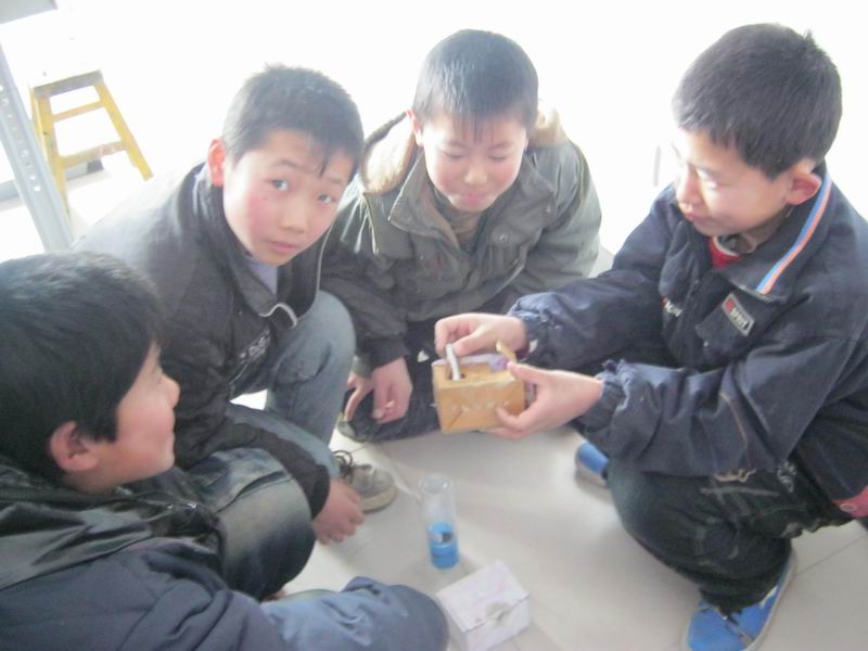 首先,我把这块儿泡沫用小刀削成船的样子,然后开始连接电路,可是,马达只能连三节五号电池,再多就容易烧掉,可是,三节也不够啊,风力上不去,不可能开起来的。唉,没办法,放弃算了。可是,轮船的样子一直住在我的脑海里挥之不去,不行,要做下去,坚持!坚持就是胜利!哥哥的话再次回响在我的耳边。忽然我想起了曹启鹏的马达就能连七八节电池,为什么我的不能呢?一问才知道,他用了一个小型的变压器,我翻箱倒柜地找到了一个变压器,连上,又连接了三节电池,一打开关,一股强劲的风竟然把设计图给吹跑了,哈哈,我成功了。我又在泡沫上弄了一些洞,把这些东西装进去,还给它起了个名字:小鸟号巨轮!