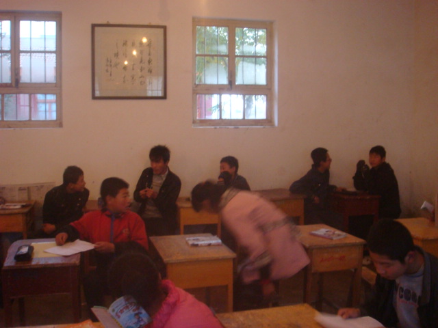 "接下来请欣赏舞蹈",团支部书记吕秀琴在讲台上说道,随后在台上翩翩起舞,台下掌声不断,台上的表演也越加精彩。之后便是猜谜语。同学们争先恐后的抢答,教室里人声鼎沸。有的同学开始"耍赖",班长气得团团转。猜谜结束,有三五个一起聊天的,也有在教室后面做游戏的,也有认真看书的。