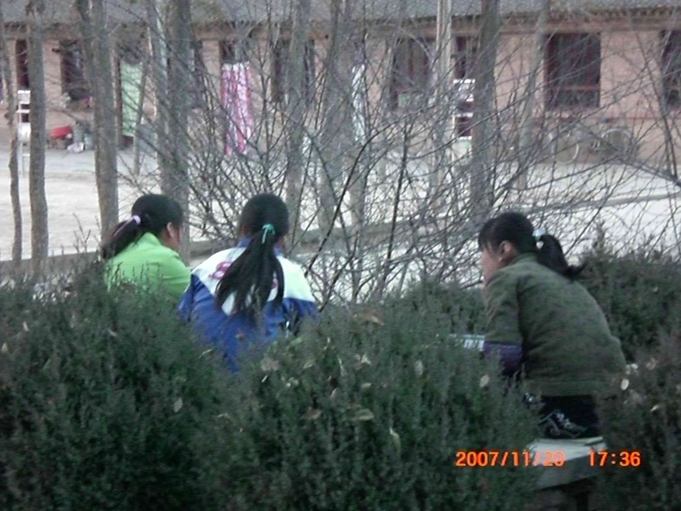 花园边上,几个同学聚在一起,好象相互探讨着什么……