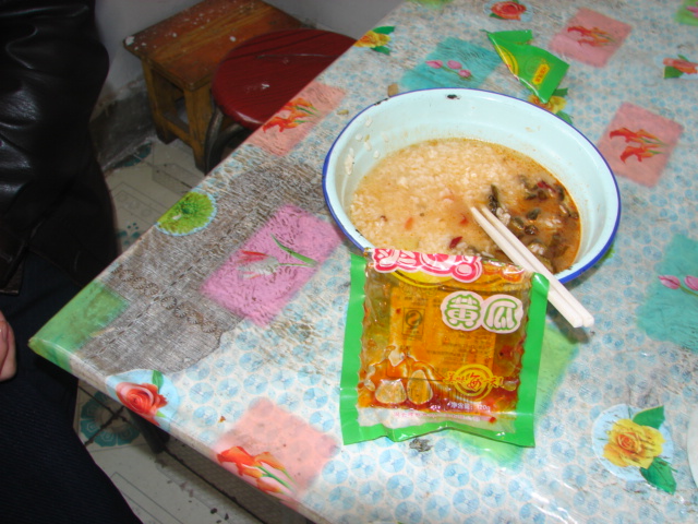 这个还有小菜可加?呵呵,错了,第4节有课的话,往往就没得饭吃了,偶尔剩些米饭的话,可以到校外小卖部买袋小菜将就一顿吧,哄哄肚子嘛。