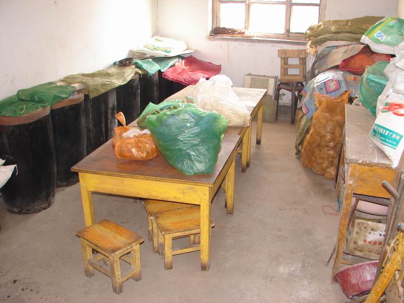 这是教工灶仓库了,为了节俭,学校出钱淹了几大缸酸菜和莲菜,囤积了若干袋土豆,土豆烧牛肉是吃不上了,酸菜烧土豆还是常常可以吃上的,家常便菜嘛,就是这样的了。