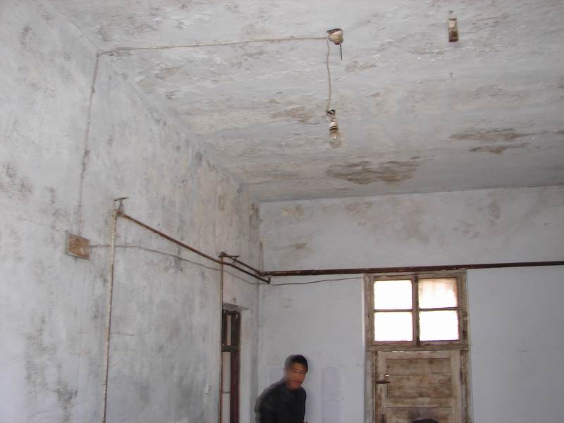 这可以算是学校里最古老的平房了,无论是下雨,还是下雪,屋顶总是毫不吝啬地往下漏水,有句成语叫做"高屋建瓴"怕就是形容这样的情形吧。屋顶的白灰皮在雨天时总是纷纷往下落了。是危房吗?不是,砖混结构的,还挺结实。但它却是一幅破旧的模样……呵呵,我们可敬的老师……就是在这所房子里就餐的啊——它是教工灶!