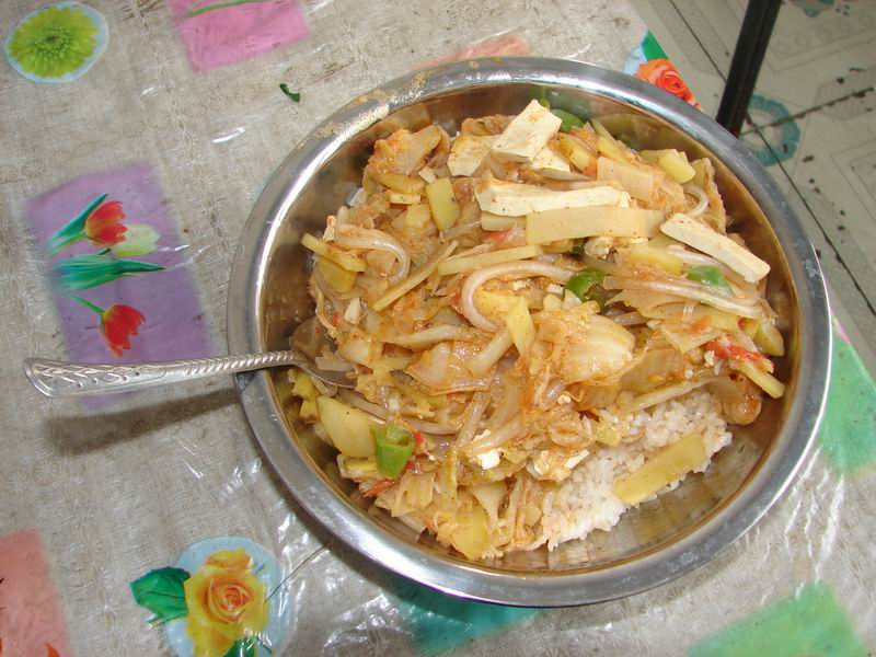 好香啊……但这是针对我们可爱的老师来讲的,因为奢求不高,虽然菜里没有丁点儿肉,但能顿顿有豆腐吃也算是不错的了,和级别高的三菜一汤相比,落差是有些大了。