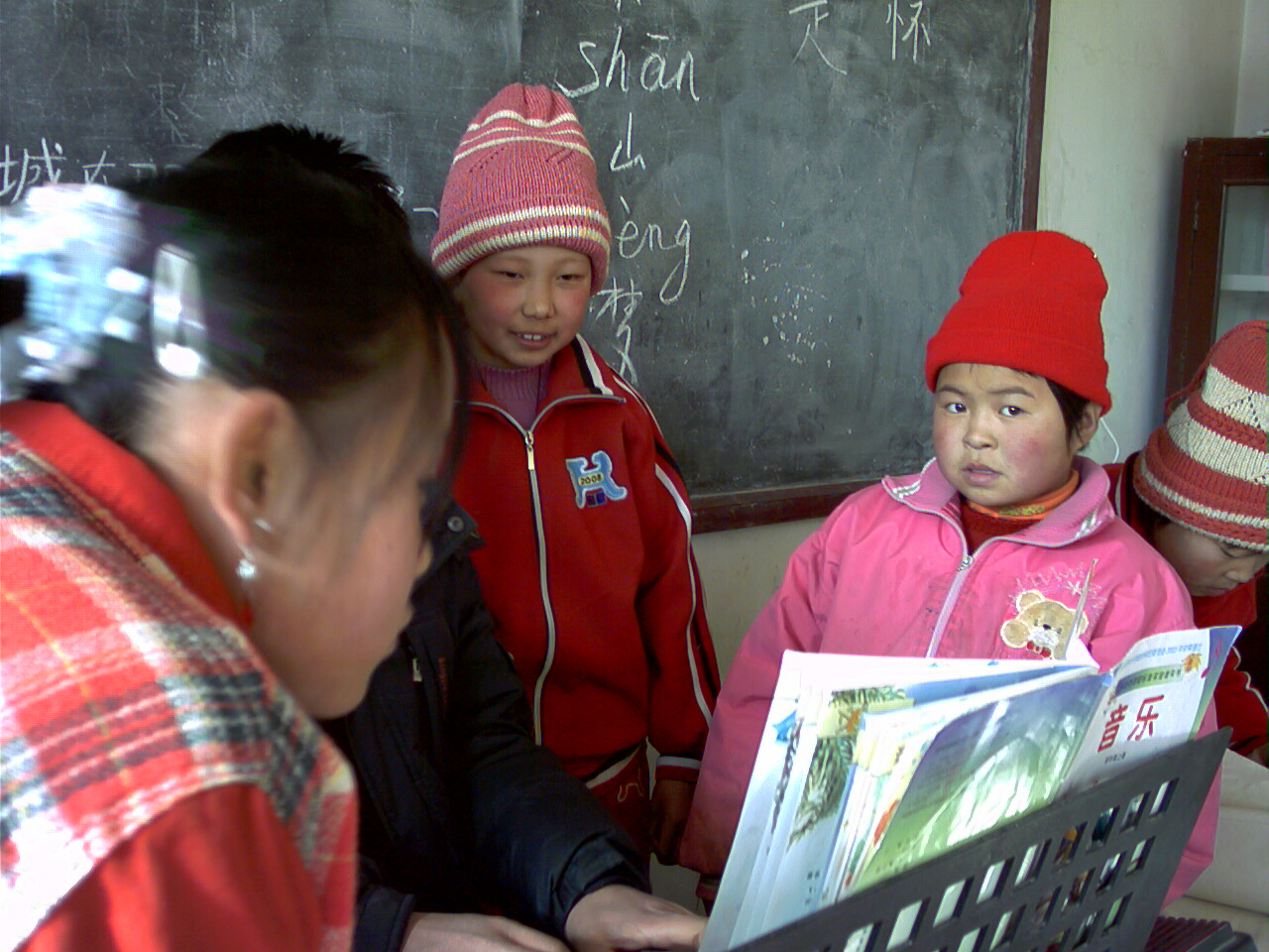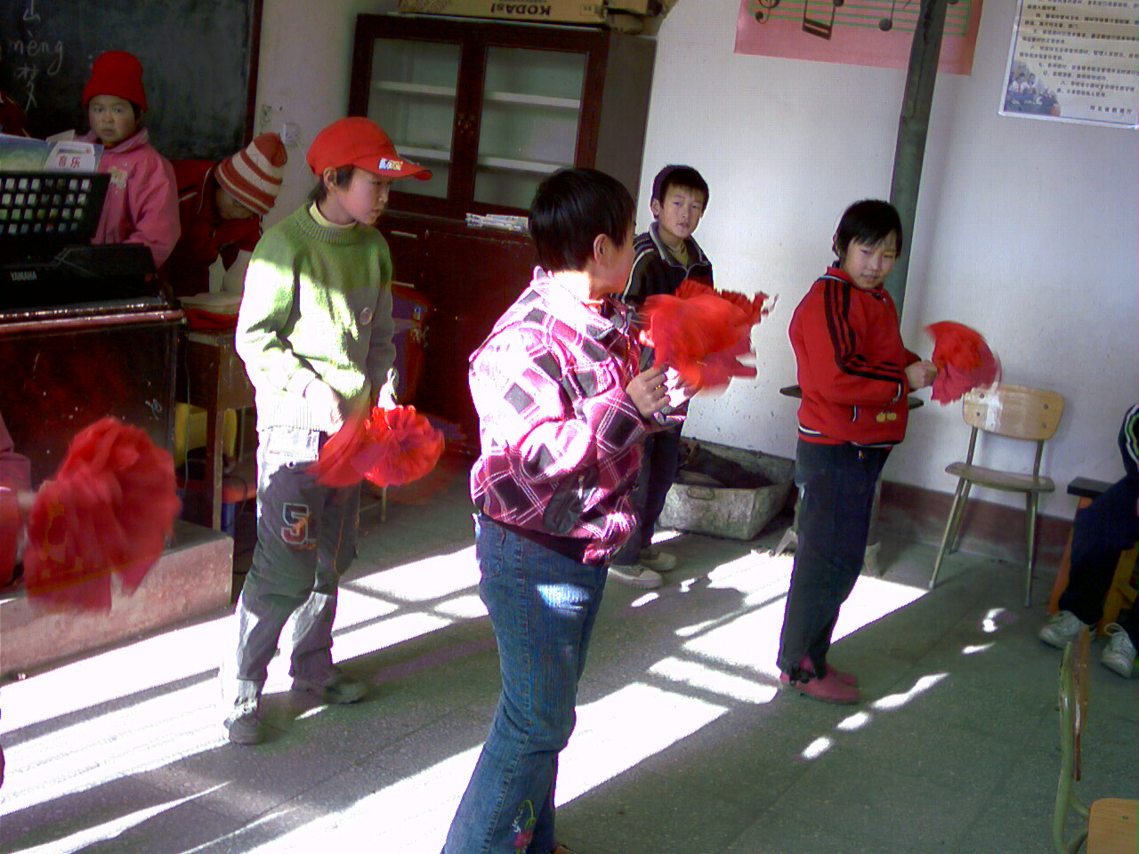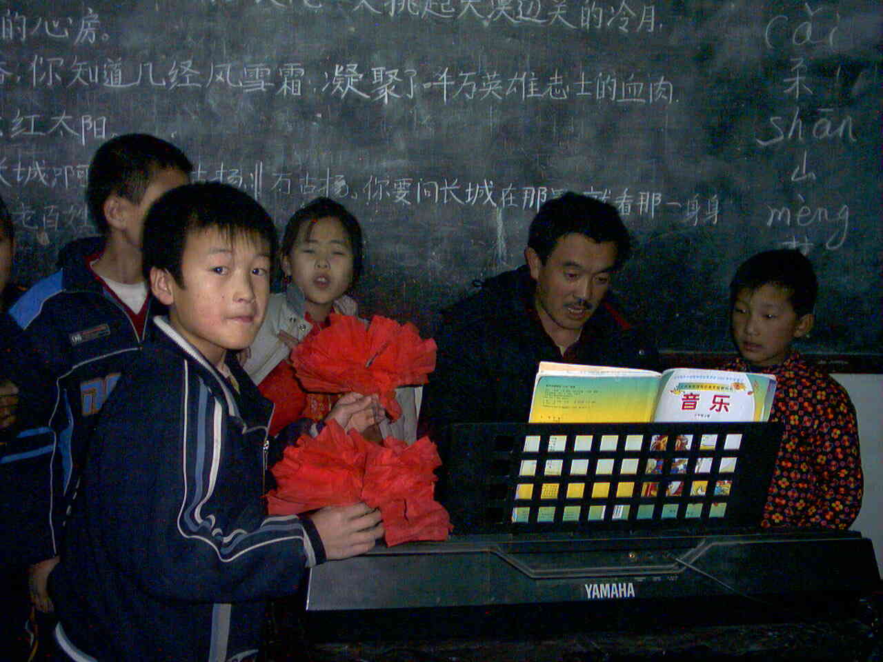 表演唱歌的同学则都围在音乐老师的跟前,仔细地听伴奏,放开嗓门高歌,那神情简直就是一个个小歌唱家。