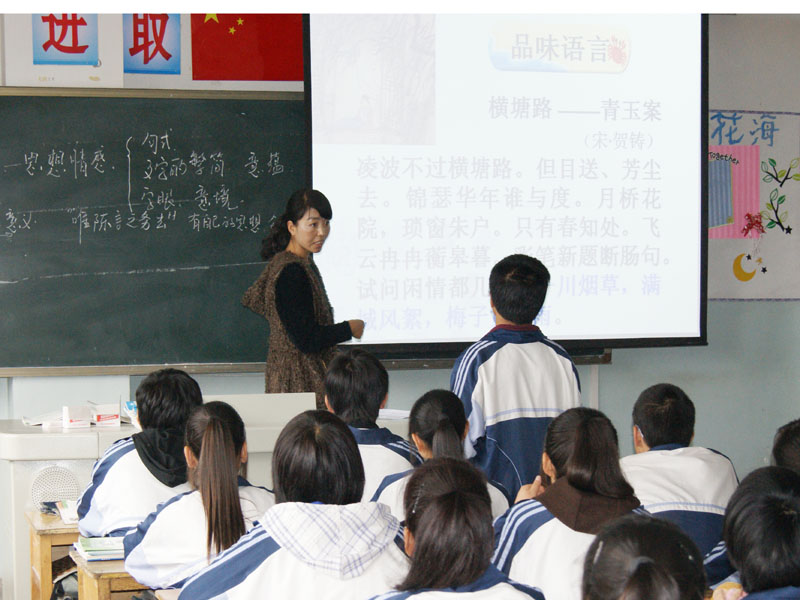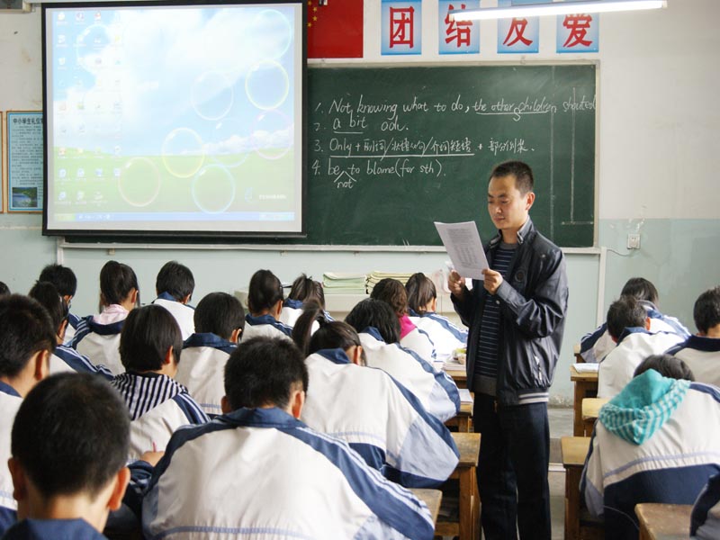这是我们的英语老师。他很年轻,上课很少说中文,高中英语很难,有时候我听不懂他在说什么,总是在他的一半句中猜测他说的意思。不过他人很好,很少批评我们。