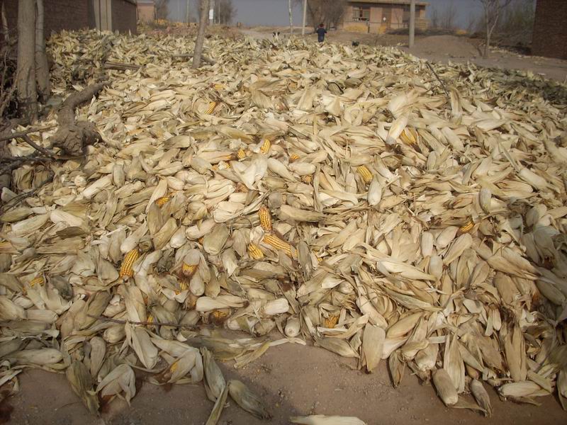 今年我家的玉米收成很不错,掰回来的玉米太多了,只能堆放在家门口的路边。不过不用怕,我们这边的玉米都是这样放的,所以也不怕丢,还有狗给看着呢。