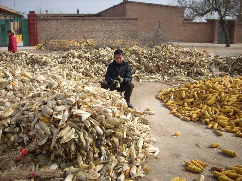 玉米脱完了,现在就可以将玉米装袋子卖掉了,而玉米核则留下来拉回家里烧炕,是非常好的取暖材料,可以把火炕烧的热热的,你要有机会来我们家做客,保证你睡热炕睡的不想走了。