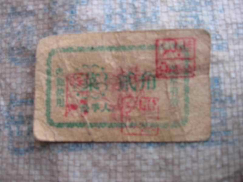 下来我就介绍一下我们灶上的票,它是用麻颜色的纸做的,常有5厘米,宽有4厘米,票的边是用花纹围起来的,里面写有"内部使用"的字样,由于老爷爷是从新疆迁下来的,所以老爷爷盖有新疆的章子。