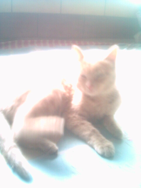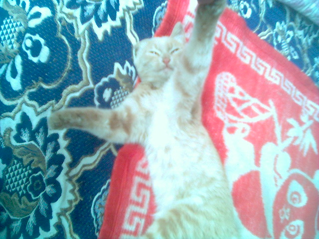 我家的猫是一只黄白相间的猫,它的体形不大,是一个很瘦很小的猫,它有一个好听的名字叫做"欢欢"。这个名字不是因为这个猫长的好看,而是因为猫整天开心快乐、活泼开朗,所以才叫"欢欢",它代表欢乐的意思。