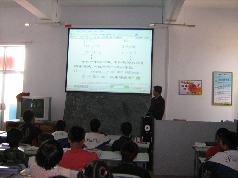 看!同学们听得多认真,眼睛里不时透露出几分新奇。这是老师在用多媒体给同学们上课,只见大屏幕上显示着清晰的文字,还不时的变换着丰富的图片,从音响中时时传出详细的解说词。