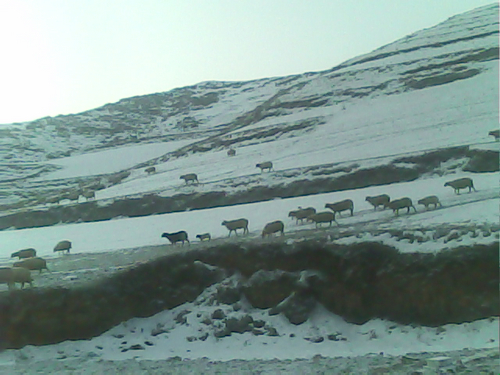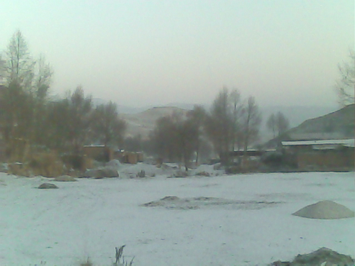 雪停了,一缕阳光拨开云朵露出了深藏在云朵中的笑脸,本来阴森森,冷凄凄的教室,被这一缕阳光冲散了它的寂静,在同学们的嘻笑下向窗外看去,可是别有一番姿色,一列火车缓缓走过,那一道道黑色的脊椎--山的脊骨,在山腰上向下延伸。