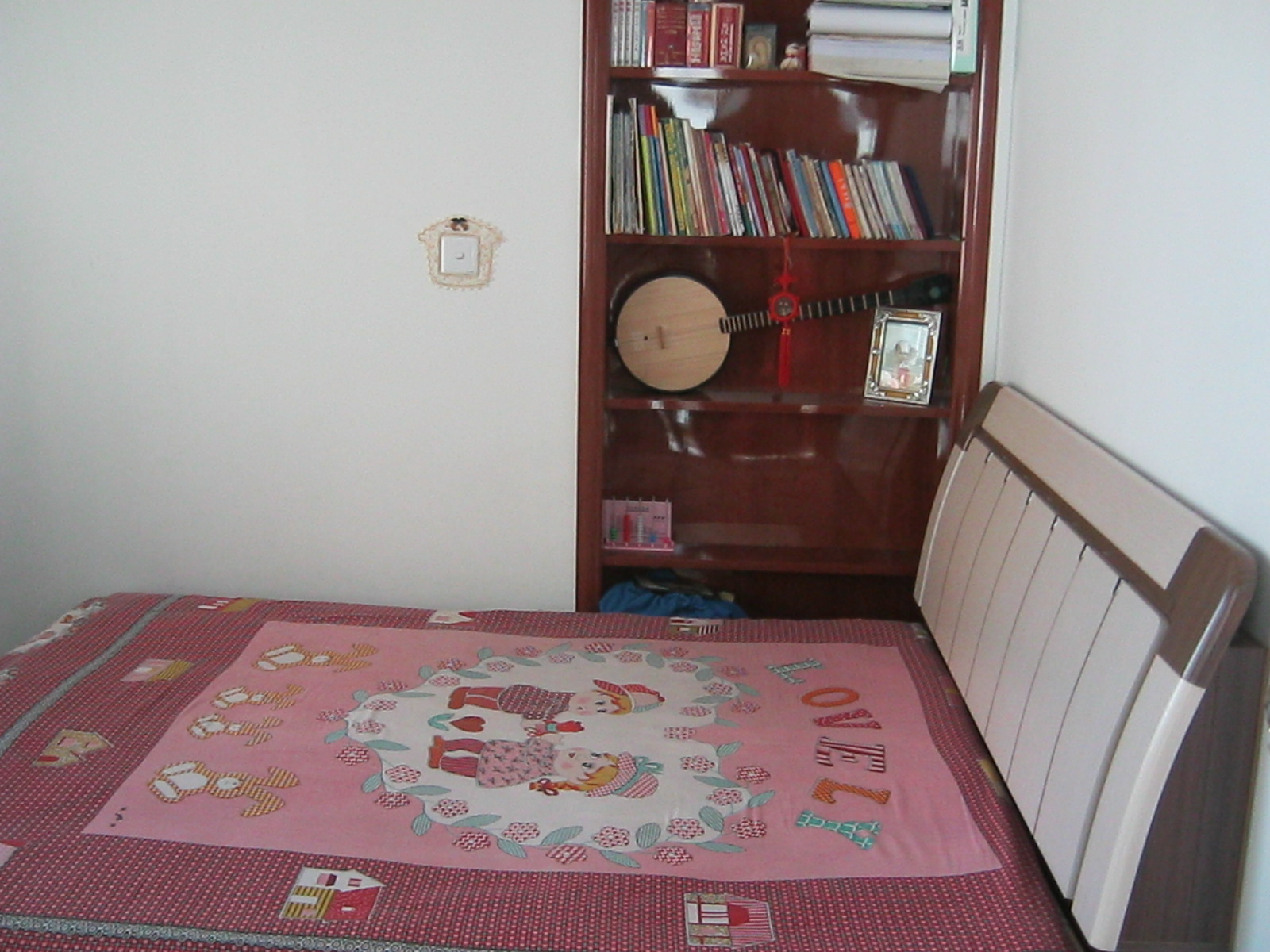 再往里,便是我的小床,床上铺的绿色床单和那绿色的衣柜搭配得十分别致。躺在床上,顺手从旁边的书架上拿起一本书,晒着太阳,别提有多惬意了。