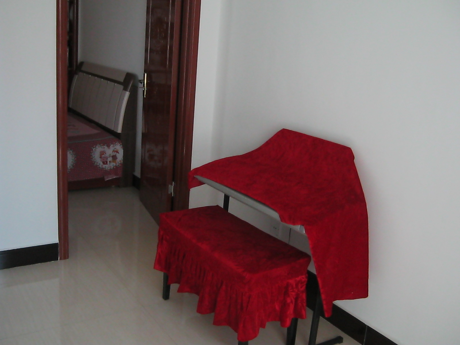 写字台对面,是我最爱的电子琴。琴和琴凳都被红色的金丝绒罩着,就好似一个容装别致的妇人,每当我用它弹奏出美妙的音乐时,整个房间就都荡漾在欢乐的海洋中。