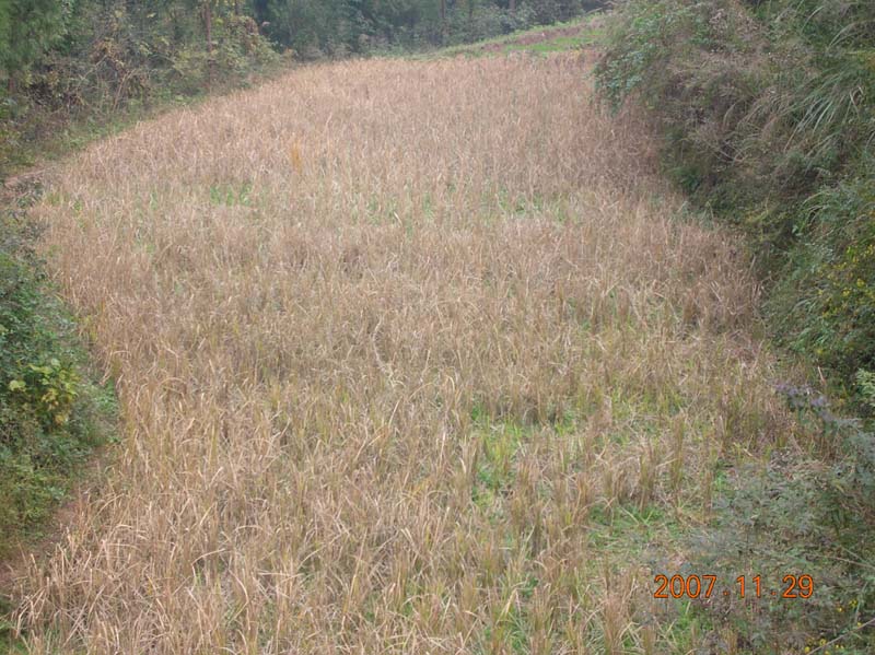 这户人家的稻田里,秋收留下的稻草在微风中飘舞,给人一种荒凉的感觉。这样上好田地只种一季水稻。